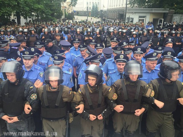 "Така кількість міліції і нацгвардії сьогодні охороняла громадський порядок біля АПУ. В адміністрації навіть був Лагун (власник Дельта-банку), люди кинулися туди, стався конфлікт, кілька людей суттєво постраждали. От мені цікаво, якби ми побачили Бахматюка (прикарпатець, власник VAB), хто б що зробив?", - пише організатор таких протестів Арсен Марінушкін.